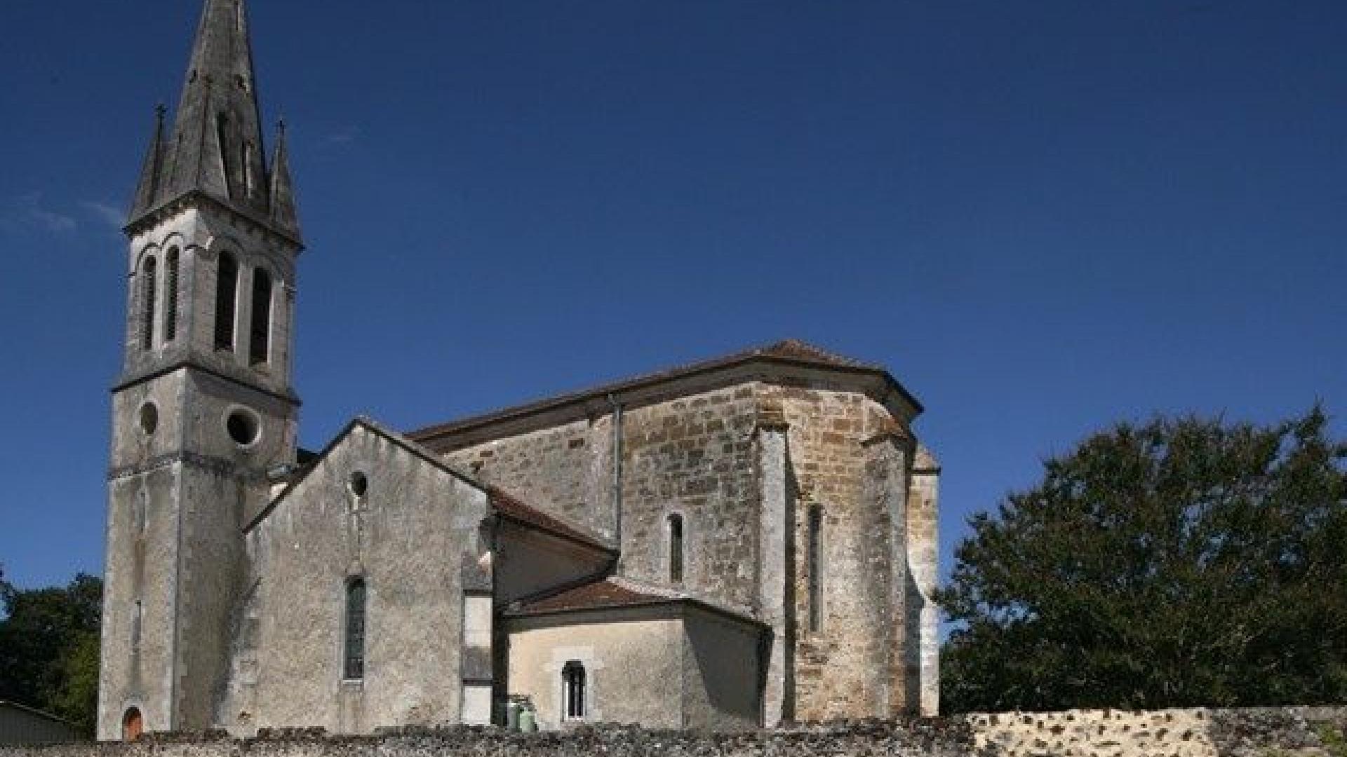 L'édifice, orienté nord-ouest / sud-est, se compose d'une nef unique de trois travées. La travée orientale ouvre par de larges arcades en plein cintre sur deux chapelles latérales et est prolongée à l'est par un chœur à trois pans de même largeur, lui-même épaulé par deux sacristies. L'ensemble de l'édifice est couvert de croisées d'ogives à voûtains de brique enduite et nervures en pierre d'Angoulême supportées par des culots de pierre, sauf dans la deuxième travée de la nef et à l'arc triomphal, où elles retombent sur des colonnes engagées à chapiteau sculpté. A l'ouest, la nef est fermée par un mur-pignon percé d'un oculus. L'entrée principale est une porte de style néo roman percée dans le mur nord de la première travée. Un clocher-tour carré, coiffé d'une flèche octogonale à pyramidions en maçonnerie, s'adosse en hors-œuvre au flanc sud de la nef.
